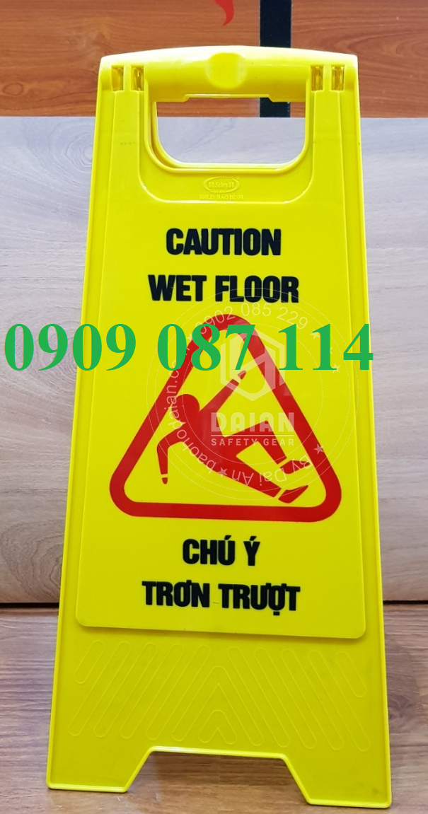 Biển báo chú ý trơn trượt hình dạng gấp chữ A, chất liệu bằng nhựa ABS chịu lực, chịu nhiệt tốt. Dạng gấp chữ A có thể đặt được ở nhiều địa hình ( mấp mô, bằng phẳng,treo..). Gấp vào gọn nhẹ mang theo di chuyển tiện lợi. ,
