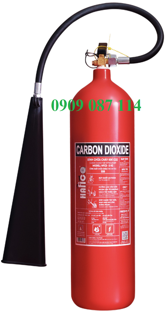 Bình chữa cháy Hafico 5kg là loại bình chữa cháy chứa khí CO2, thường được sử dụng cho các đám cháy loại B, C (chất lỏng, chất khí và thiết bị điện, điện tử)