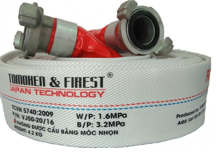 Vòi chữa cháy Tomoken 1.6 Mpa kèm khớp nối (khớp nhôm, đồng khớp theo các tiêu chuẩn khác như BS, Machino, Nakajima... theo yêu cầu của khách hàng).