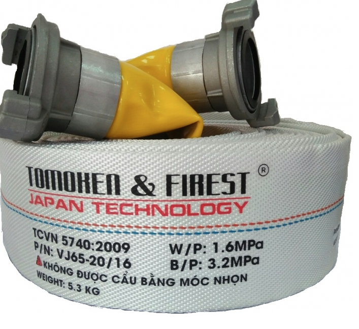Vòi chữa cháy Tomoken 1.6 Mpa kèm khớp nối (khớp nhôm, đồng khớp theo các tiêu chuẩn khác như BS, Machino, Nakajima... theo yêu cầu của khách hàng).