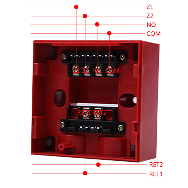 Hệ thống dây: Kết nối hai bus không phân cực với bộ điều khiển. Nếu cần điều khiển bơm trực tiếp, nút nhấn báo cháy và hộp điều khiển bơm phải được kết nối với hai dây