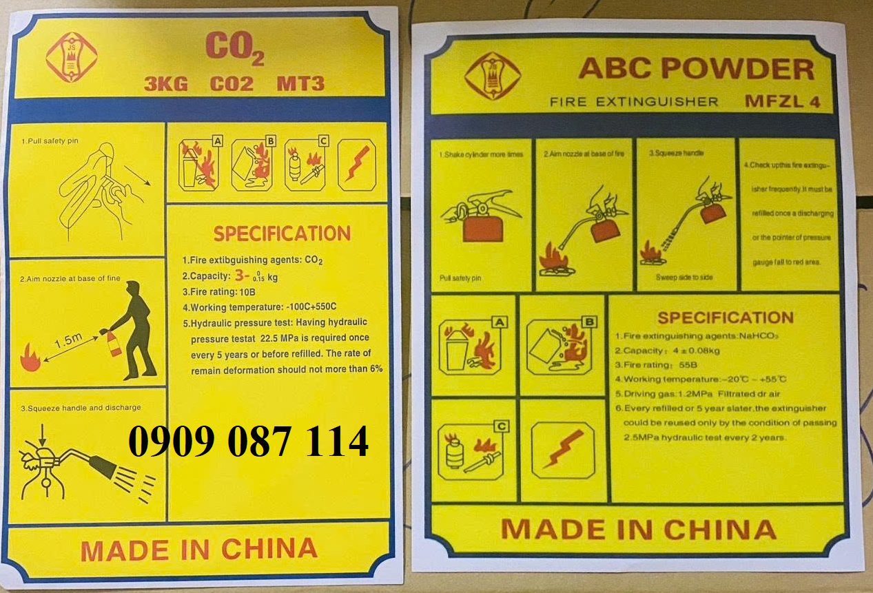 Những tem nhãn này giúp người sử dụng nhanh chóng nhận diện loại bình và cách sử dụng trong trường hợp khẩn cấp.