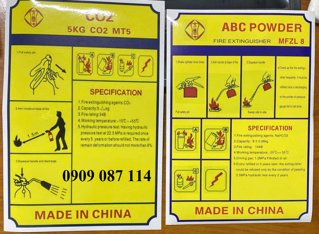 Các loại tem nhãn bình chữa cháy phổ biến