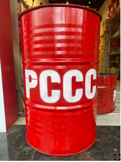 Thùng phi PCCC sắt 200L hay thùng phuy chứa nước chữa cháy được gia công lại và sơn lại theo nhu cầu của khách hàng. Thùng phi đựng nước PCCC là thiết bị chữa cháy đơn giản có chức năng chứa cát chữa cháy. Khi có phát sinh đám cháy có thể dùng hoặc dụng cụ tương đương múc nước từ thùng đựng nước PCCC và hất vào đám cháy để dập tắt cháy