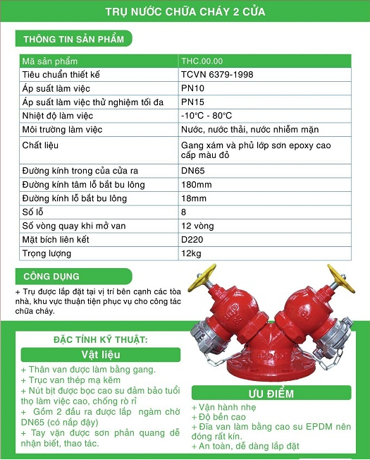Catolog của trụ nước chữa cháy 2 cửa BQP có kiểm định PCCC